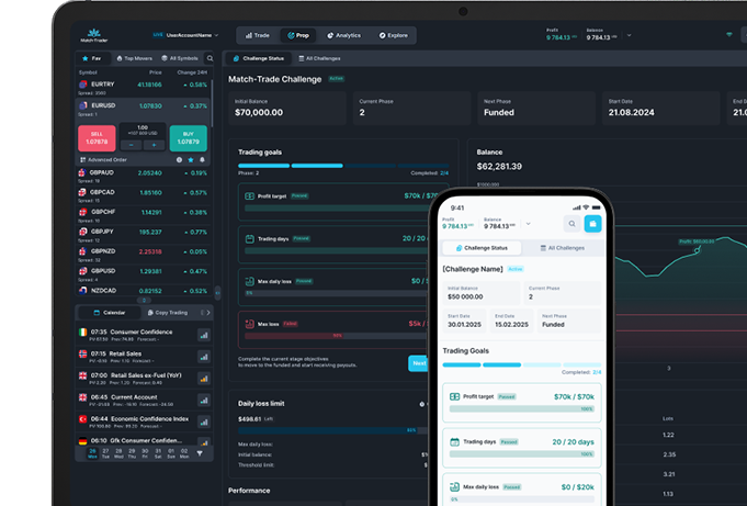 As futures prop trading expands, firms need technology that mirrors real market conditions and supports growth through structured challenge-based evaluations. Match-Trader delivers a comprehensive solution with performance dashboards, contract-based evaluation rules, and a seamless trading experience across web, desktop, and mobile. With both native and TradingView charts, along with full branding, CRM integrations, and flexible API connectivity, Match-Trader enables fast, scalable, and efficient futures evaluation setups.